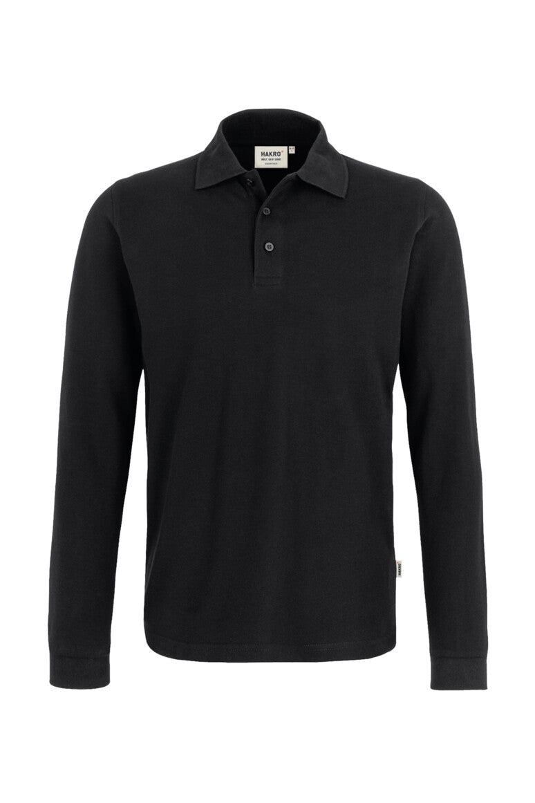 Klassisches langärmeliges Poloshirt mit hochwertig verarbeiteter 3-Loch-Knopfleiste mit extra haltbar angenähten, bruchsicheren Knöpfen, Ton in Ton mit gelasertem HAKRO Schriftzug. Mit Ersatzknopf, Nackenband und doppelt geriegelten Seitenschlitzen. Die Rippstrickbündchen an den Ärmeln sind durch den LYCRA®-Anteil besonders formstabil. Hergestellt aus feinmaschigem Piqué aus langstapeliger, gekämmter und ringgesponnener CmiA-Baumwolle. Gewebtes HAKRO Necklabel aus hochwertigem Kettsatin mit weichen, ultraschallgeschnittenen Bandkanten für höchsten Tragekomfort und gewebtes HAKRO Flaglabel an der linken Seitennaht.